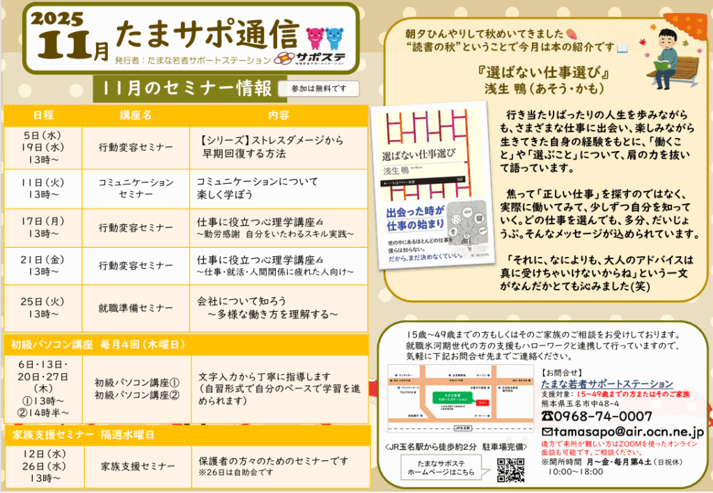 ダウンロードはこちらから⇒たまサポ通信&日程表2025年11月号