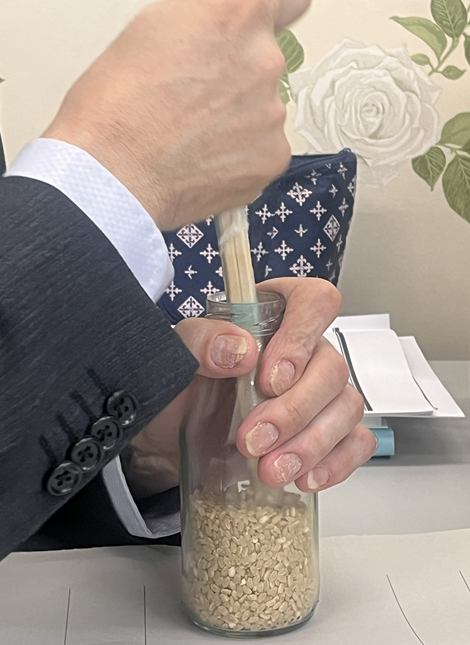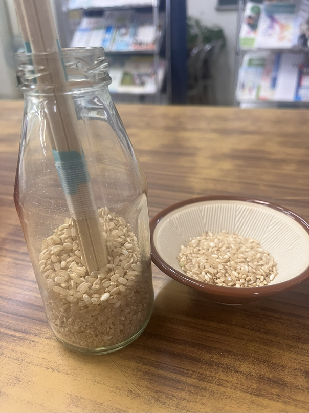 スタッフが瓶での精米をどうしてもやってみたかったので