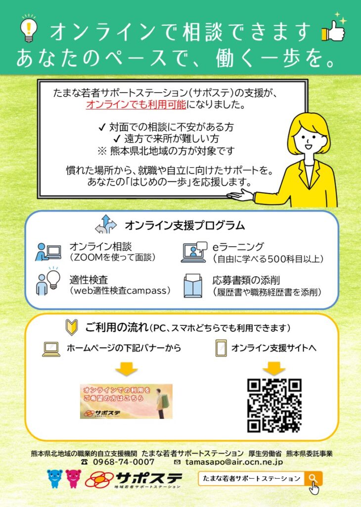 たまな若者サポートステーションの支援が、オンラインでも利用可能になりました。